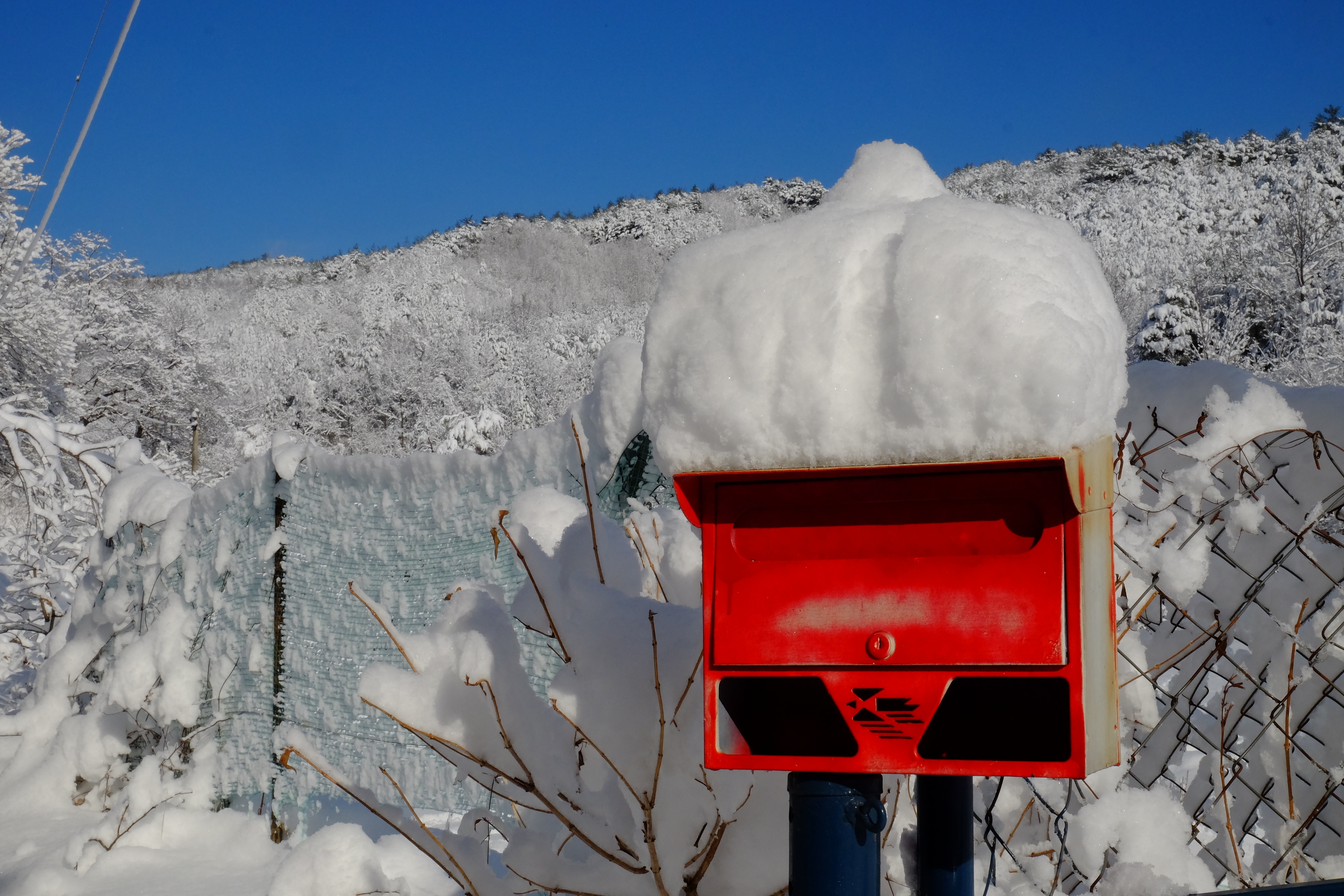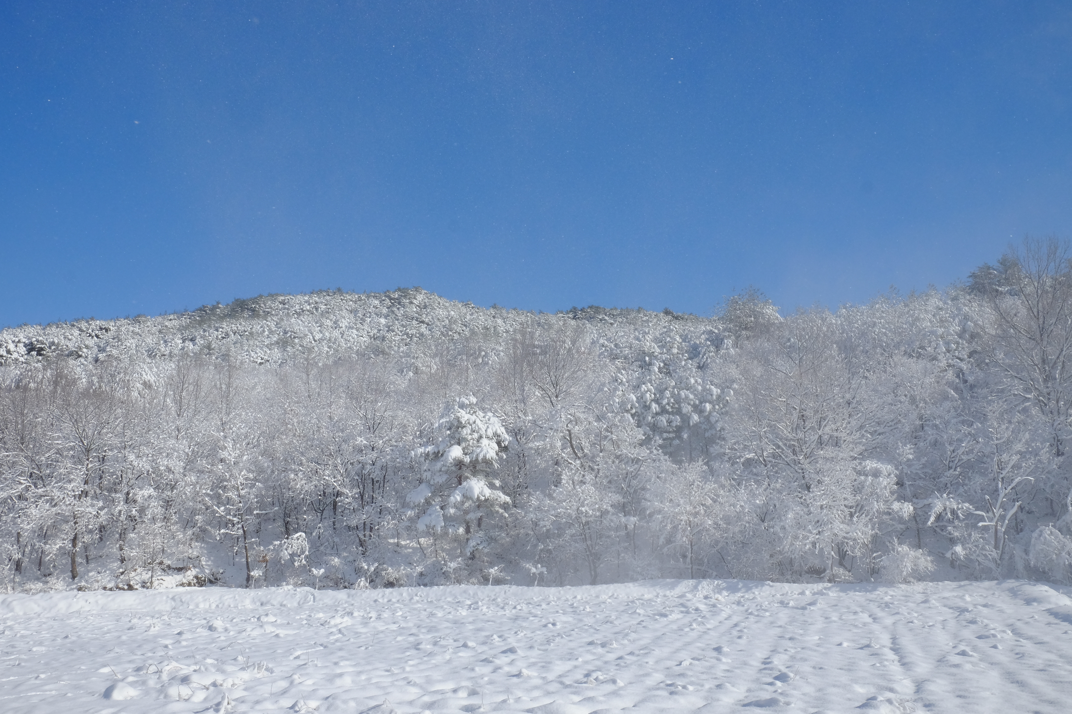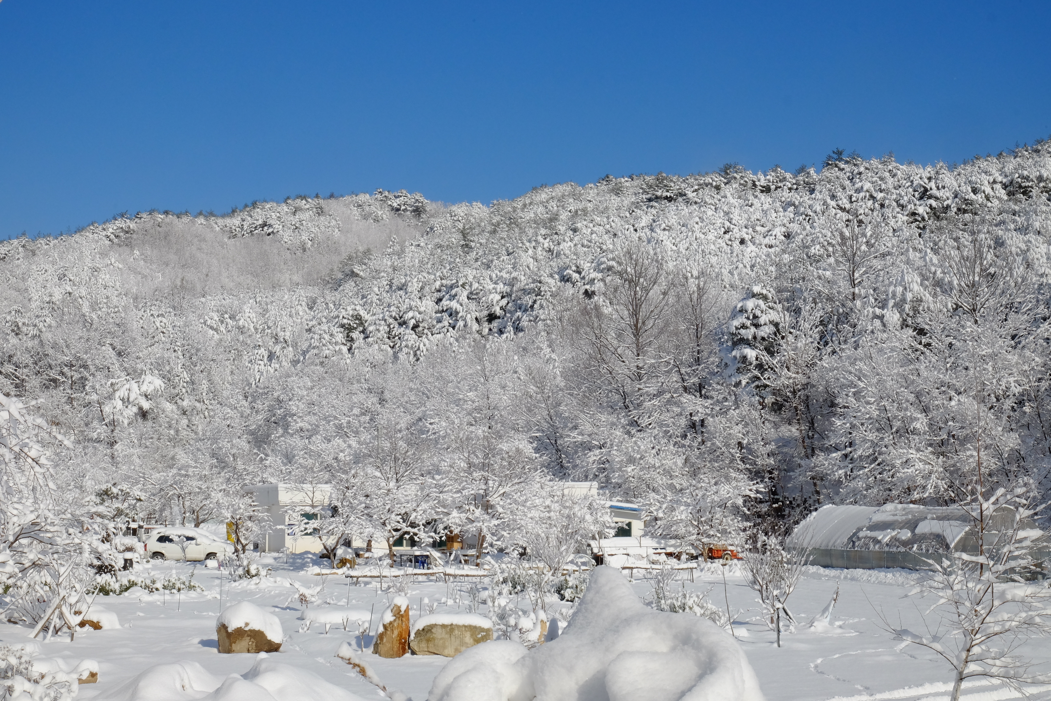 멋지네. 파란 하늘이랑 하얀 눈이랑 이러면서 또 찰칵,