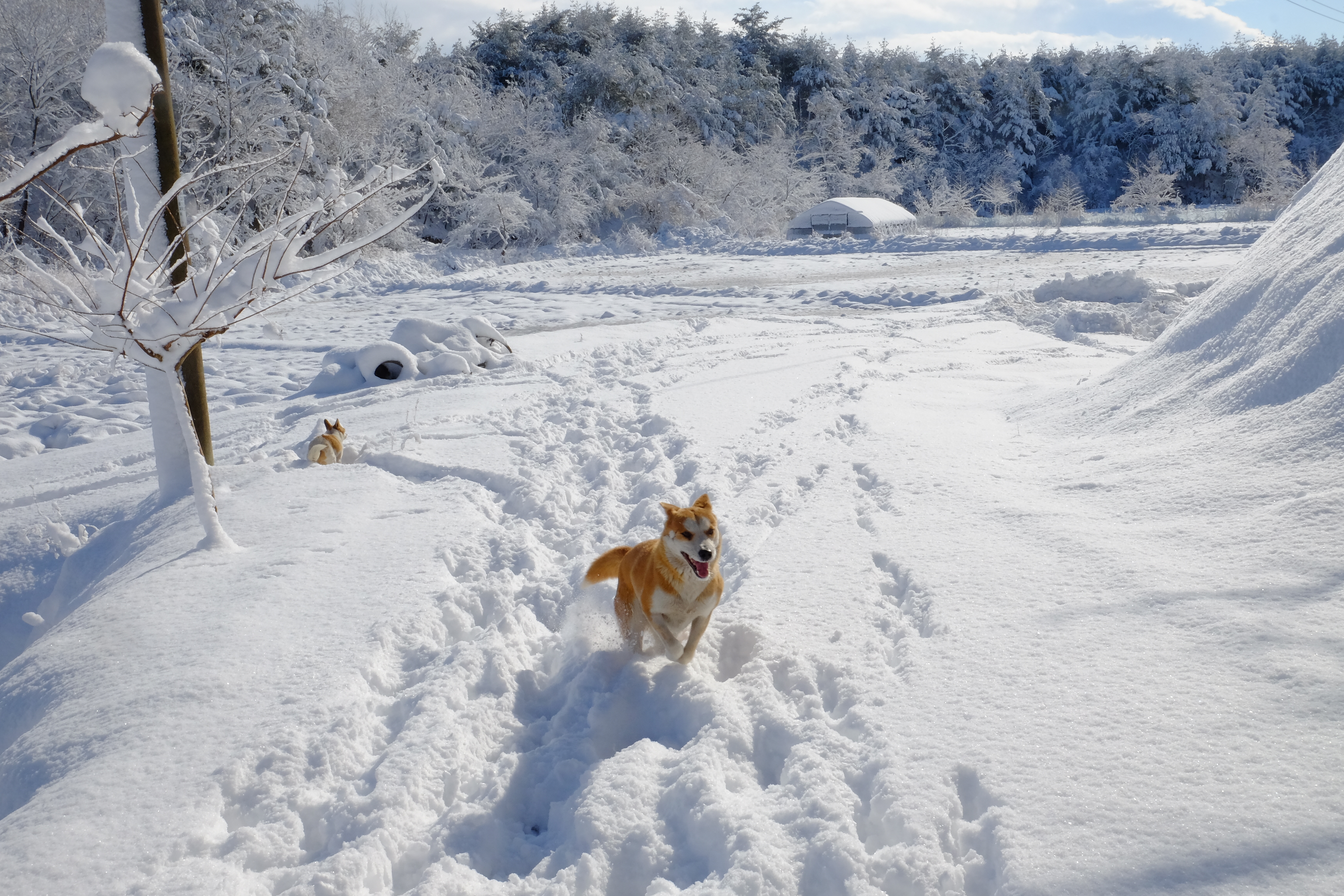눈에 개들이 신났습니다. 길을 다 내 놓네요.