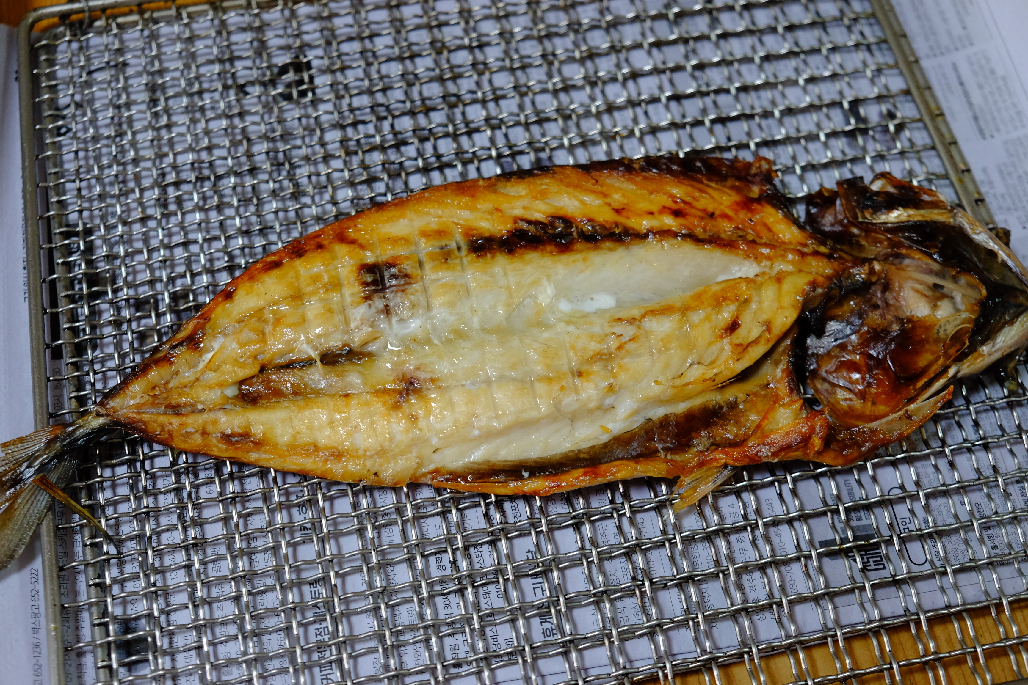 참나무 땐 불에 고등어 한 마리 굽습니다.